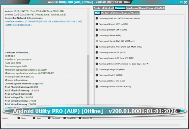 For Windows-based systems, Android Utility Tool V200.01.0001 is a versatile and powerful Android data maintenance platform. This tool is universal in terms of the variety of Android brands and chipsets that it handles, be it Qualcomm, MediaTek (MTK), Exynos, or Unisoc, with regard to device models and the level of security.