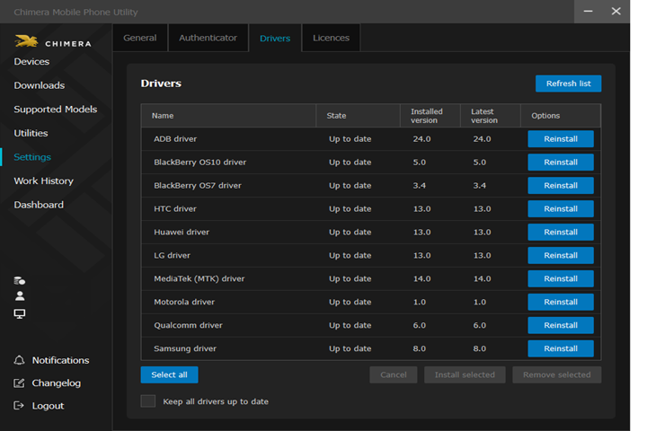 On Chimera, drivers such as USB, ADB, and vendor-specific drivers will be demanded. Upon request, these drivers must be accepted for the software to communicate with the devices being recognized. Restart the computer if required.
