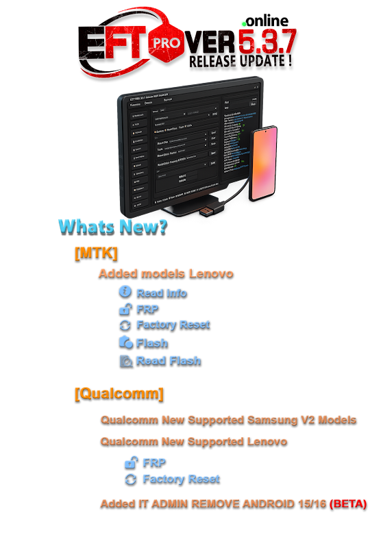 If you are a reseller, customer, or official representative, you may need a box like EFT Pro for FRP service, flashing support, account operation, and system cleaning tasks on staffed phones. To put the concept into use, it talks with phones over ADB, Fastboot, Download Mode, and EDL, which depend on the type of operation or phone.