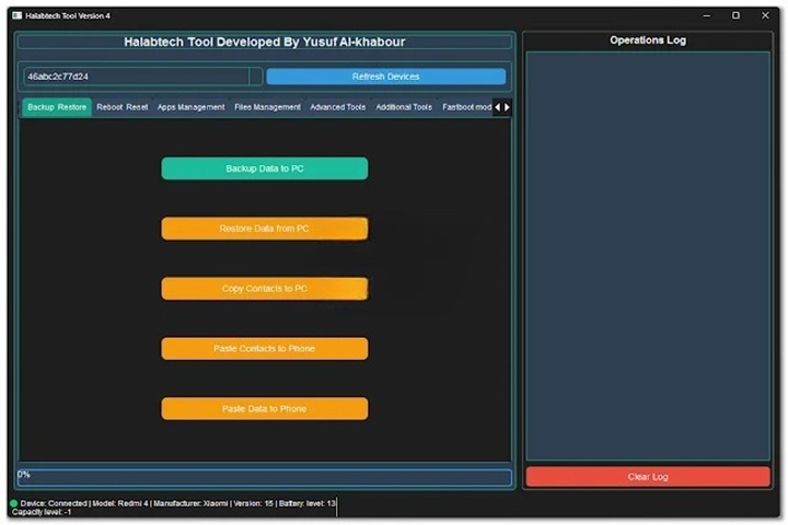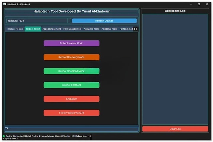 In addition to the traditional operations, i.e., compatibility with MTP (Media Transfer Protocol) mode, and so forth, HalabTech Tool divides its use among ADB (Android Debug Bridge) mode as well as Fastboot mode. As such, users can carry out a broad range of functions including but not limited to FRP reset, factory reset, information retrieval, and device unlocking through all the possible connective patterns.