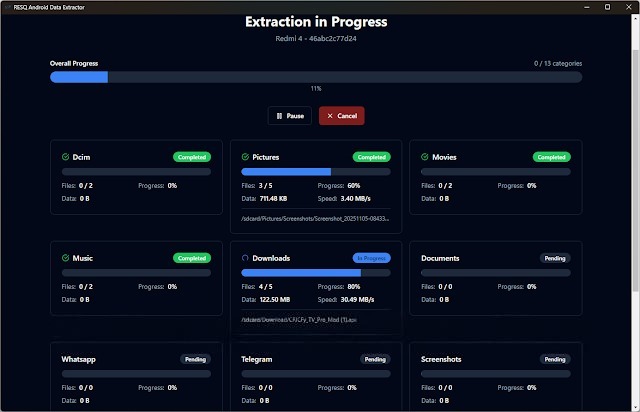 Powerful RESQ (Root Explorer Extractor) Android Data Extractor Tool is smartphone data extracting and analyzing software for the Android system environment. The RESQ Android Data Extractor can easily and quietly pull all the personal information, such as contacts, pictures, movies, logs, SMS, WhatsApp media, and call history from both active and dead Android smartphones.