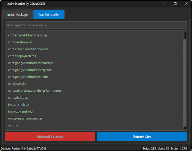 By clicking the scan button, the device storage is automatically scanned, and packs of XAPK files are shown.